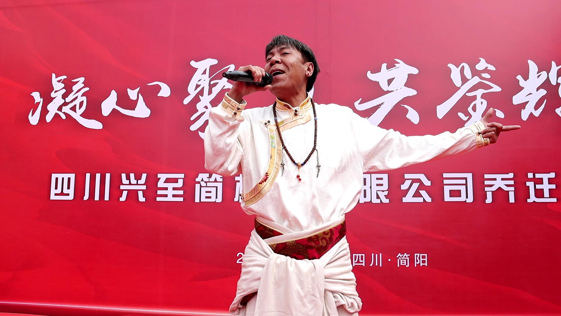 (喬遷儀式現(xiàn)場(chǎng)藏族歌手獻(xiàn)唱)