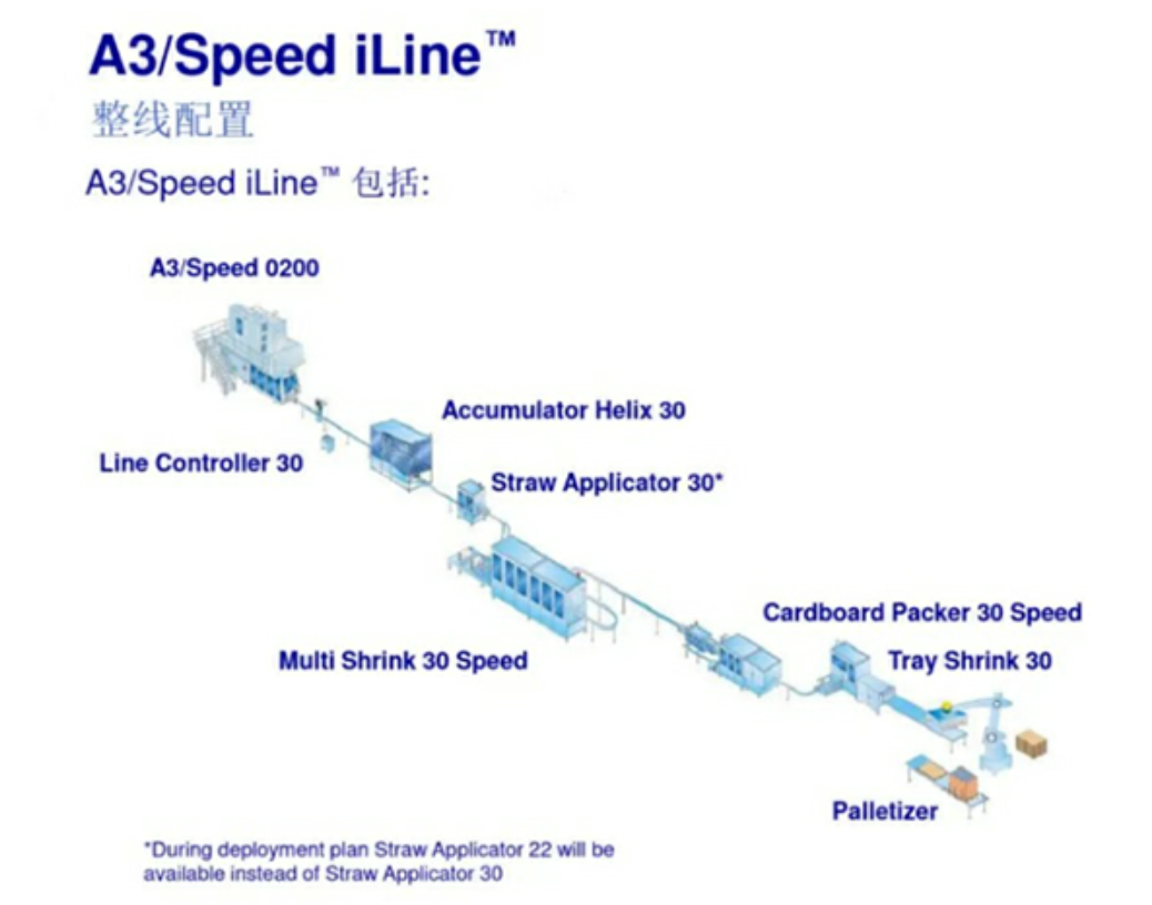 A3 高速線的設(shè)計(jì)理念是高度一體化和高度自動化,旨在降低運(yùn)營成本并提高生產(chǎn)效率。實(shí)現(xiàn)了灌裝機(jī)與分銷設(shè)備的一體化,提升了整體性能和易用性,最快灌裝速度可達(dá)每小時(shí)24,000包。